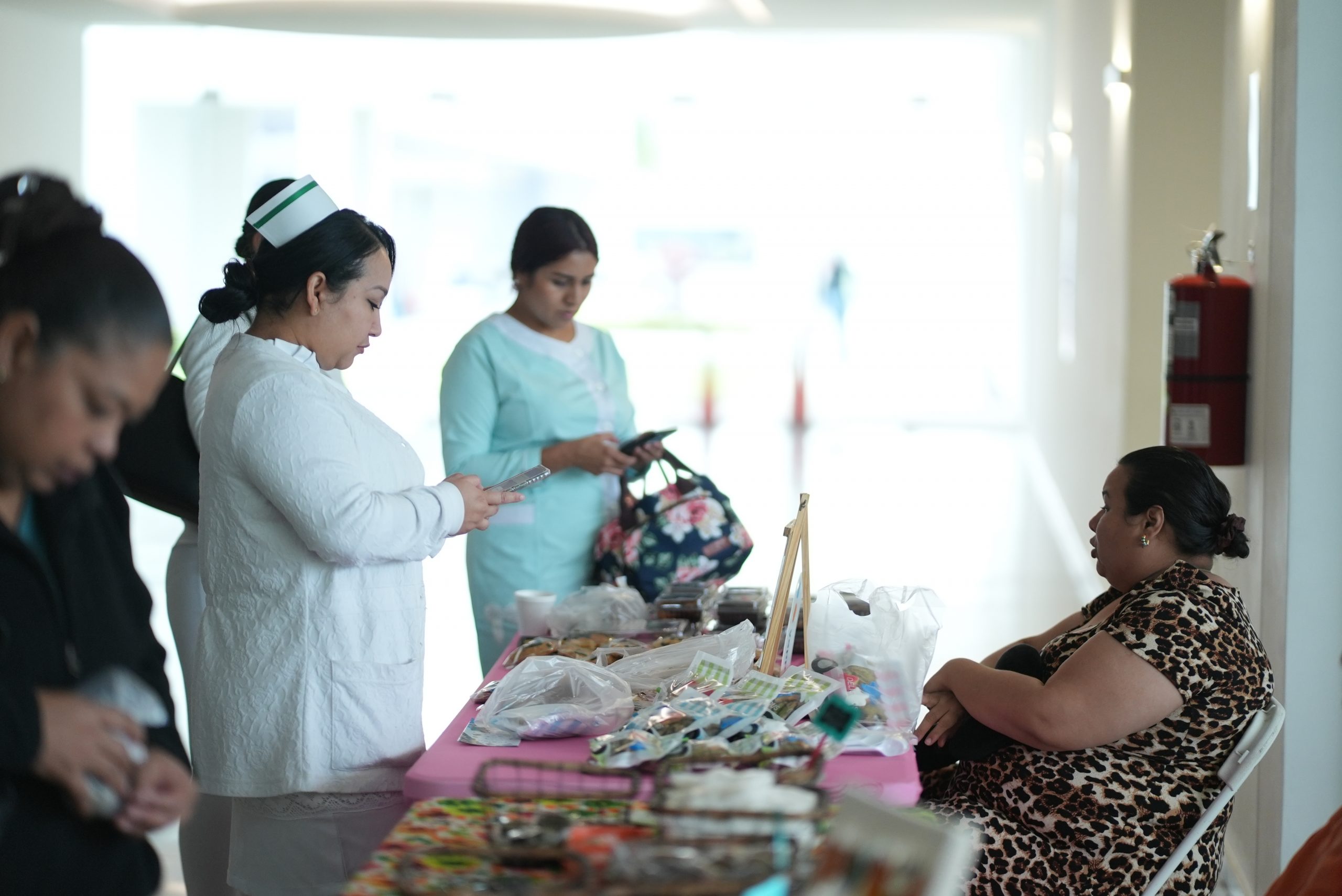 En la Ciudad de la Salud el personal médico y administrativo realizó la izada del pabellón nacional en un acto lleno de civismo; donde, además, pequeños emprendedores expusieron sus productos.