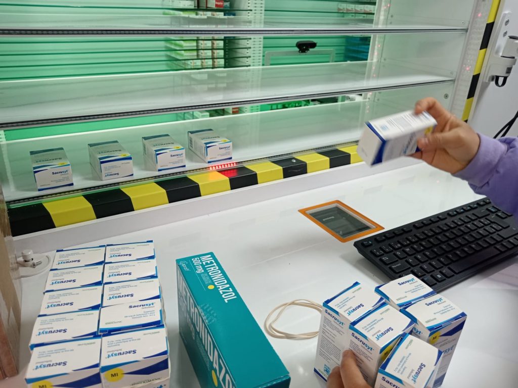 Este sistema permite mantener un control constante sobre la distribución de los medicamentos dentro del almacén, así como sobre las fechas de vencimiento, los números de lote y las cantidades disponibles para su dispensación a los pacientes.