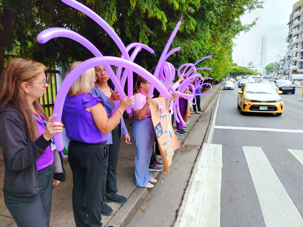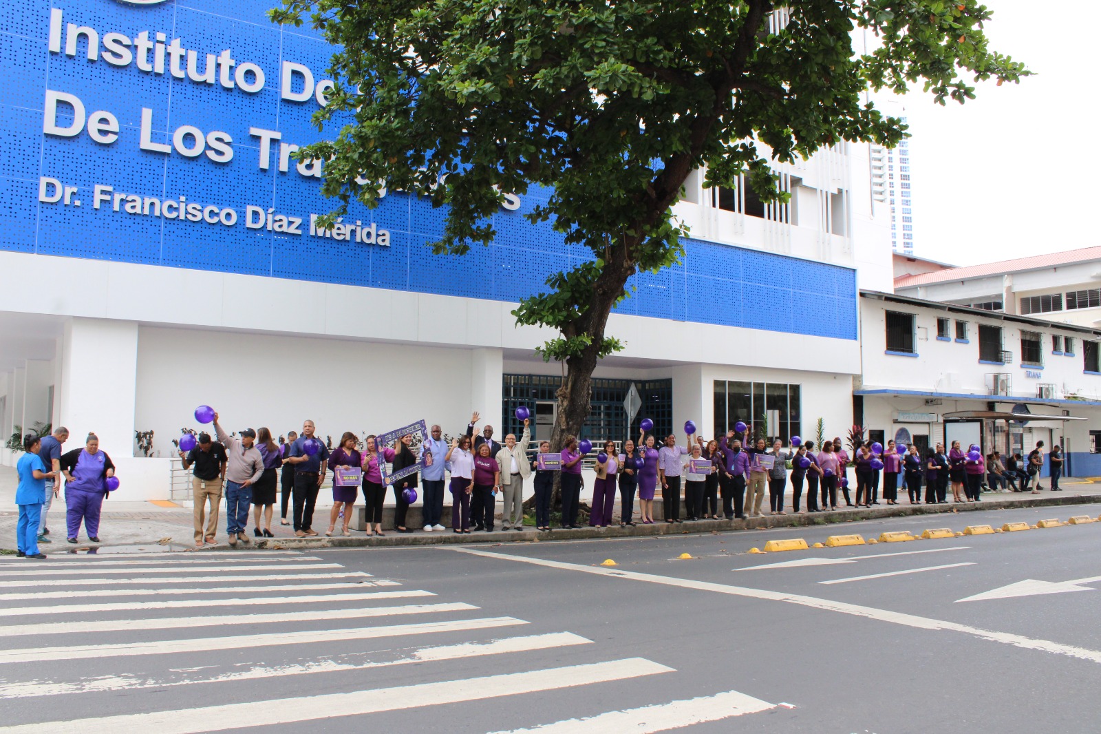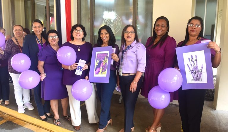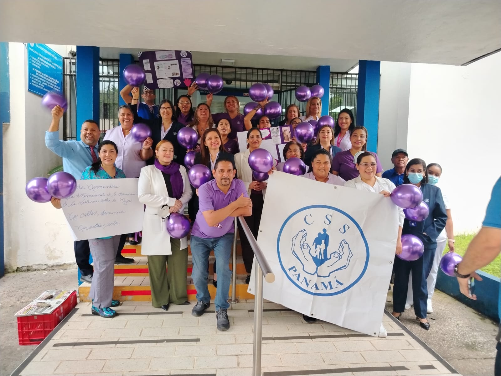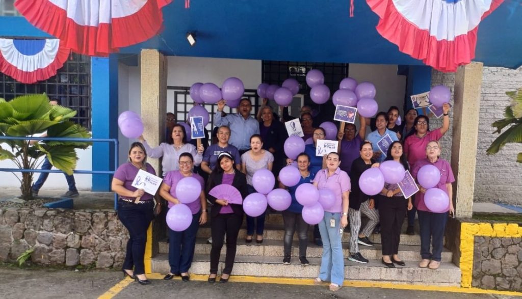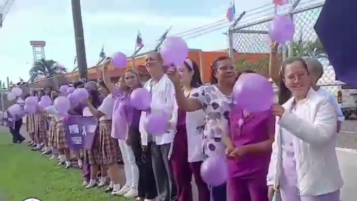 Con globos púrpuras y pancartas alusivas a la no violencia contra la mujer, funcionarios de la CSS en Chitré realizaron una cadena humana. A esta actividad se unió el personal del Ministerio de la Mujer de la provincia, fortaleciendo el mensaje de unidad y respeto.
