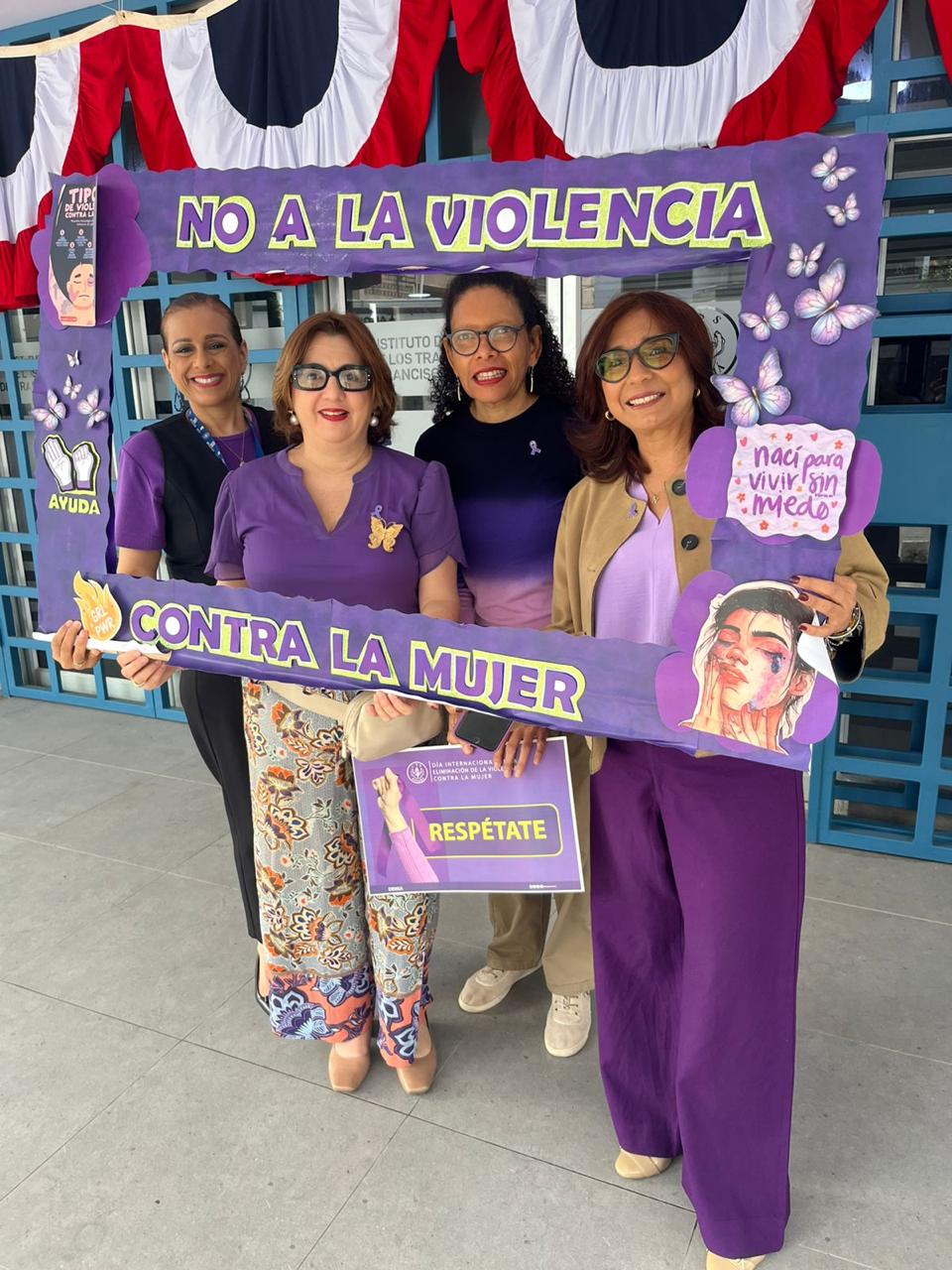 En la provincia, funcionarios se unieron a la cadena humana con globos morados que representan el lema del 2025 “No calles, actúa, denuncia”. Además, reafirmaron su compromiso con la defensa de los derechos de la mujer y la promoción de una cultura de respeto y solidaridad en la comunidad.