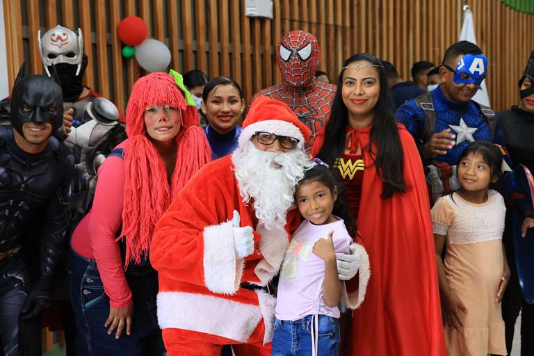 Durante la actividad denominada “Misión Reyes Magos con Firmeza”, la alegría se reflejó en los rostros de los niños, quienes disfrutaron de un ambiente lleno de armonía y esperanza con la llegada de una caravana encabezada por Santa Claus en su trineo, acompañado de superhéroes como Superman, la Mujer Maravilla, el Capitán América y los Tres Reyes Magos.