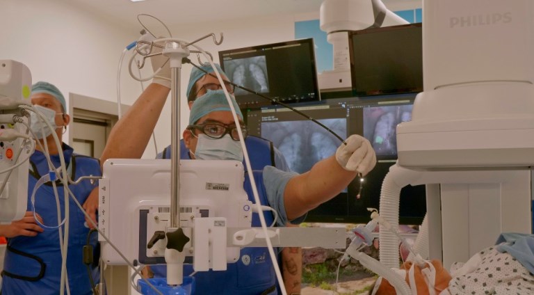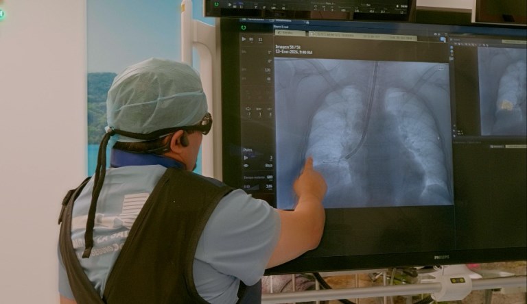 El nuevo procedimiento, a cargo del Servicio de Neumología de Ciudad de la Salud, combina fluoroscopía aumentada y tomografía en cono in situ, herramientas de última generación que permiten localizar con exactitud las lesiones pulmonares y confirmar la correcta posición del instrumental antes de realizar la biopsia.