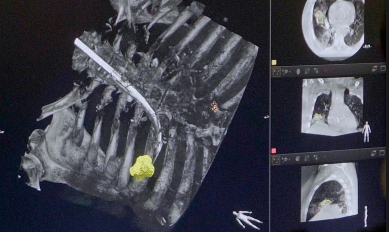 “Con la fluoroscopía aumentada marcamos la localización exacta de la lesión y, mediante la tomografía en cono realizada en el mismo momento del procedimiento, corroboramos que estamos en la posición correcta antes de tomar la biopsia”, detalló el especialista.