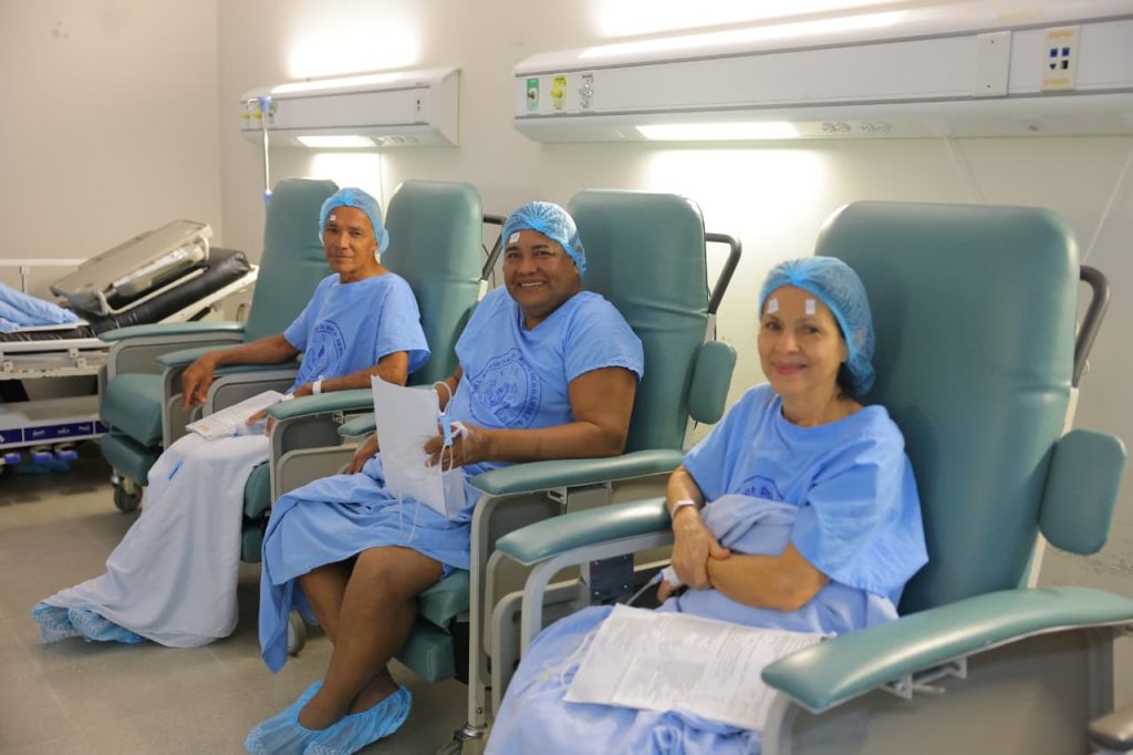 La mayoría de los beneficiarios son adultos mayores de 60 años diagnosticados con catarata, mientras que los casos de pterigión corresponden principalmente a personas entre los 30 y 50 años. Todos los pacientes han sido previamente evaluados y cuentan con sus exámenes completos, garantizando condiciones óptimas para los procedimientos.